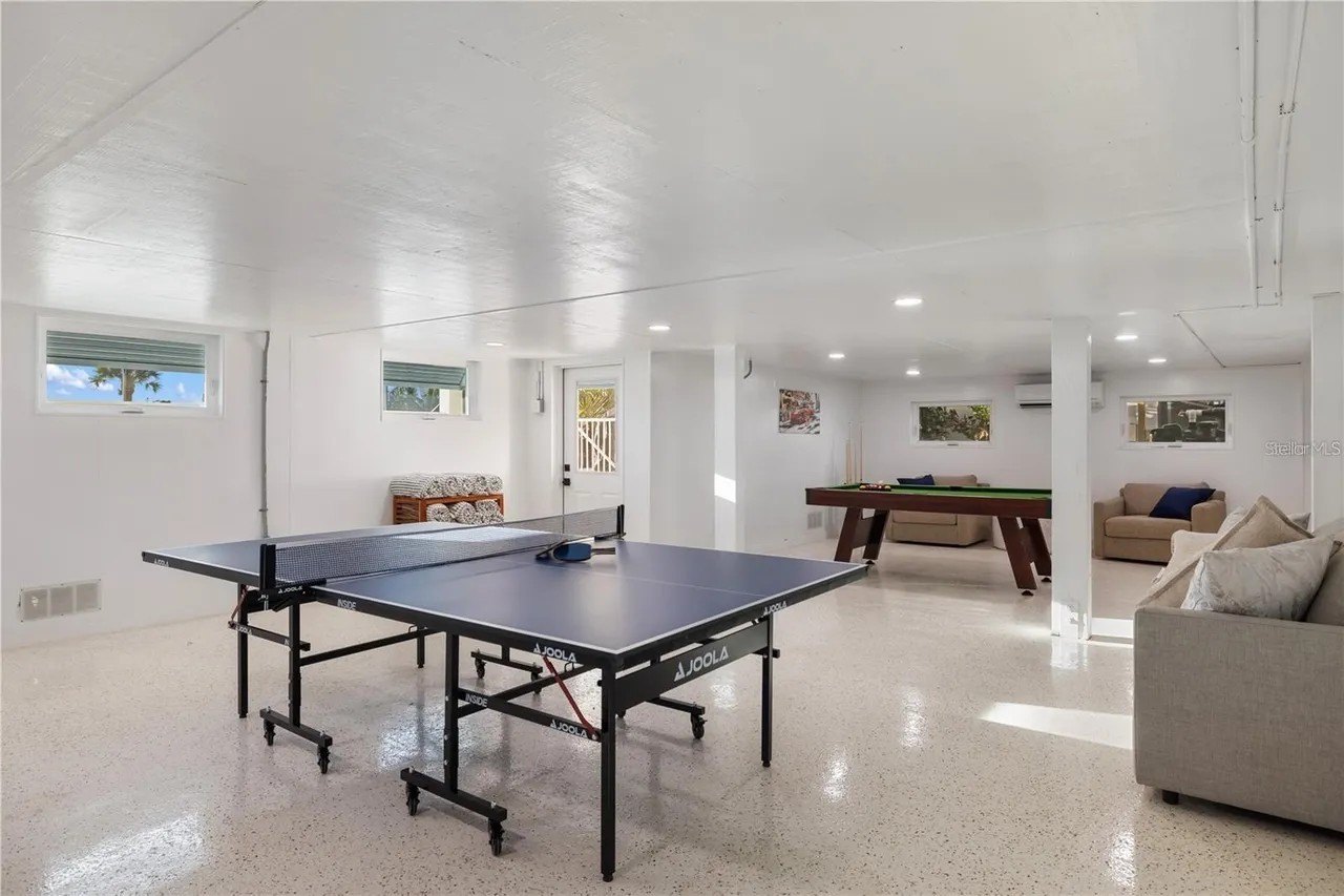An elevator connects the three-story home, which also boasts an entertaining space with a pool table and a gym.