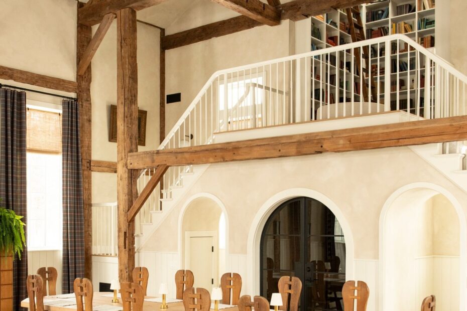 As for the building’s bell tower, the design duo transformed it into a library, with shelves of books stretching up to large windows that fill the space with natural light.