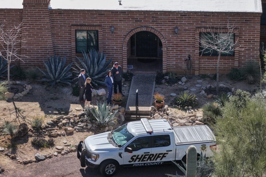 Images and video taken outside of the $1 million Tucson-area dwelling in the afternoon of Feb. 25—nearly one month after Nancy is thought to have been abducted from her home—show multiple officials arriving in a convoy of vehicles.