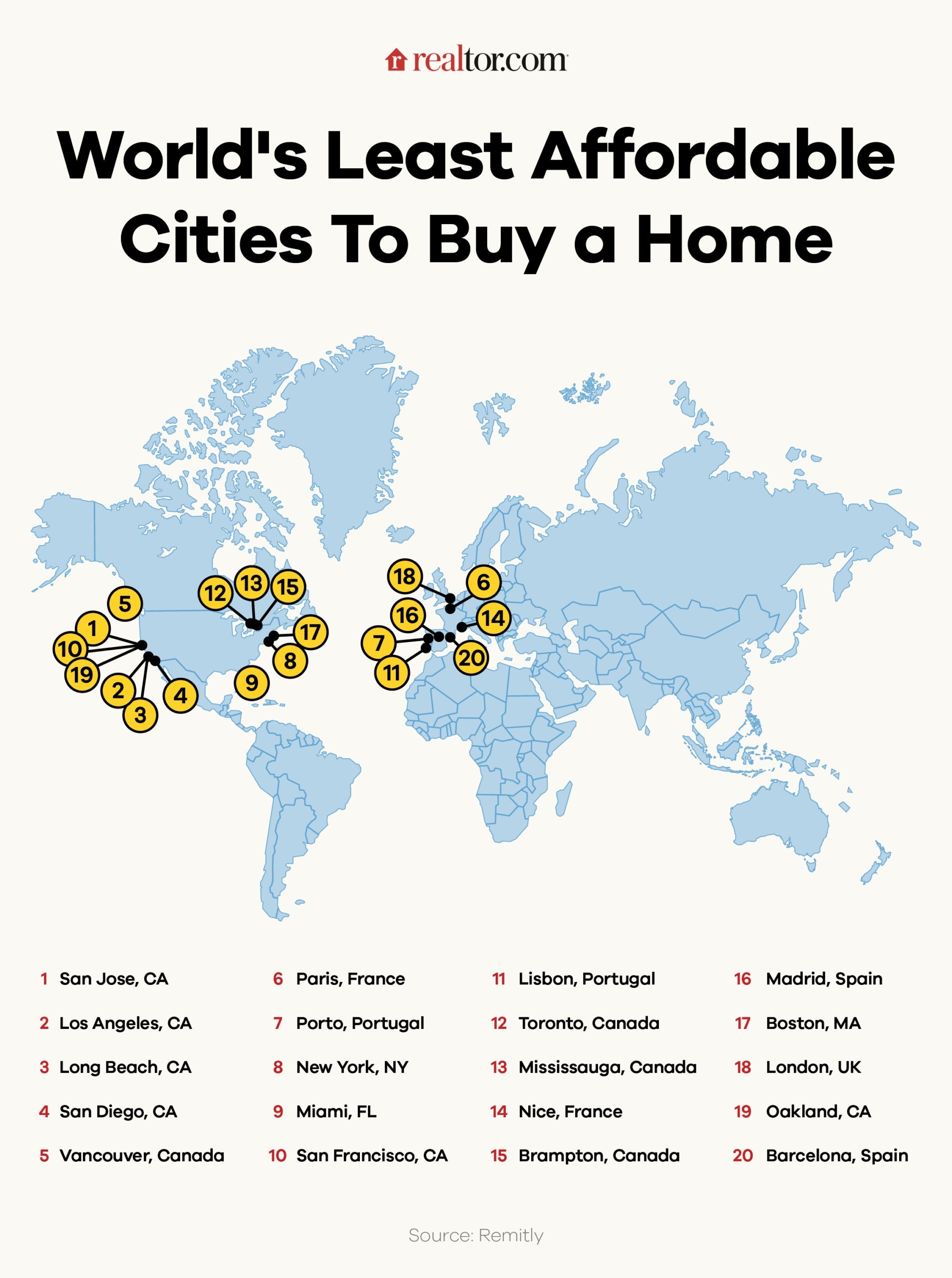 California dominates a world list, but in an expensive way. Nine of the priciest locales of the least affordable cities to buy a home are in the United States: San Jose, CA, Los Angeles, Long Beach, CA, San Diego, New York City, Miami, San Francisco, Boston, and Oakland, CA, according to a new study from… Read More »The World’s Least Affordable Cities Revealed—and U.S. Tech Hub Is Named as Hardest Place To Buy a Home - How Madison Chock and Evan Bates Gave Their All for Olympic Gold—Even Quitting U.S. To Move to Canada in Pursuit of Glory
