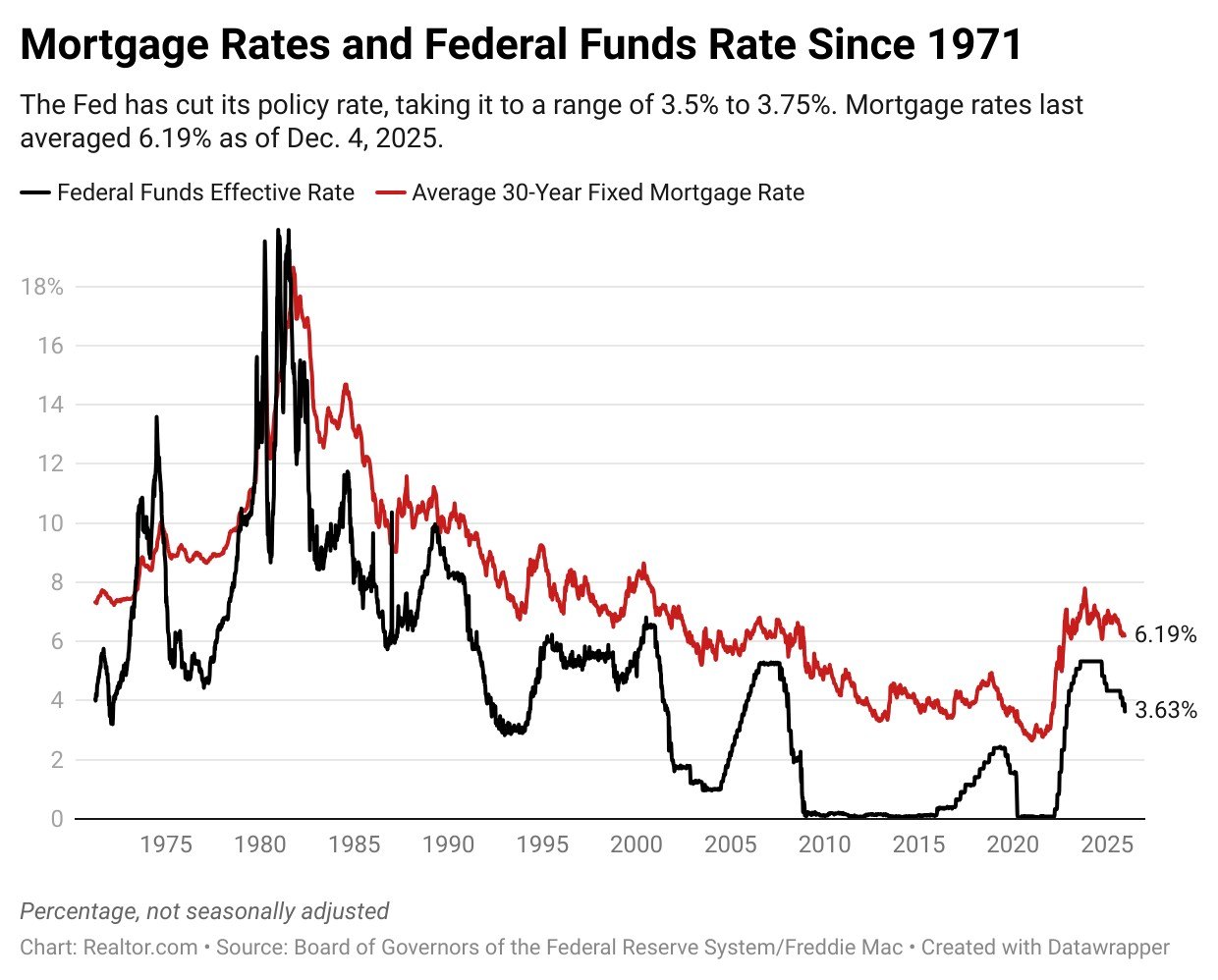 “On balance, the data were sufficient for a majority of the committee to support a rate cut, but the vote highlighted the wide variety of perspectives on the appropriate policy decision,” says Realtor.com® Chief Economist Danielle Hale.