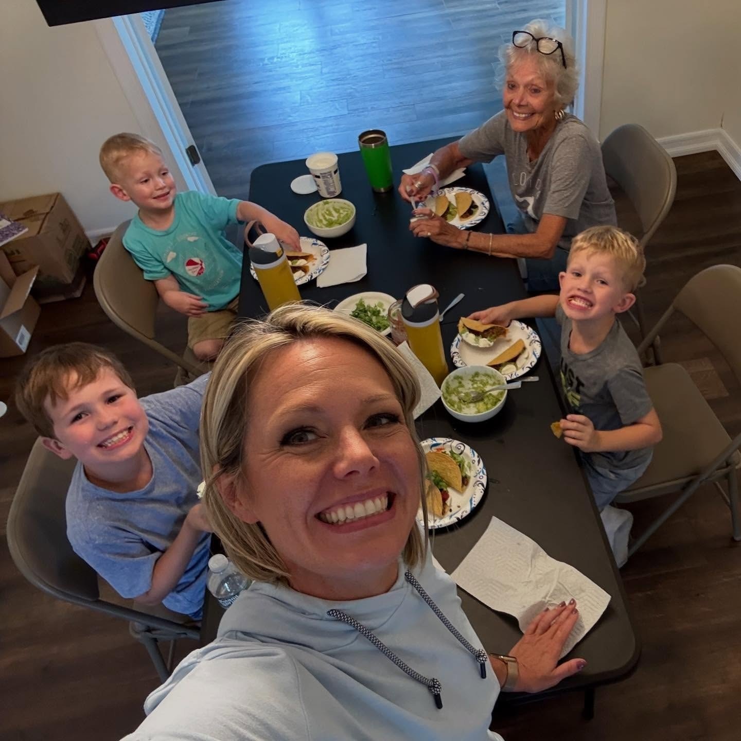 The host previously teased their move on her Instagram by sharing images of her children posing for their first day of school outside of their suburban house, which is surrounded by lush greenery, and one image of the family having dinner while moving boxes sat near them.