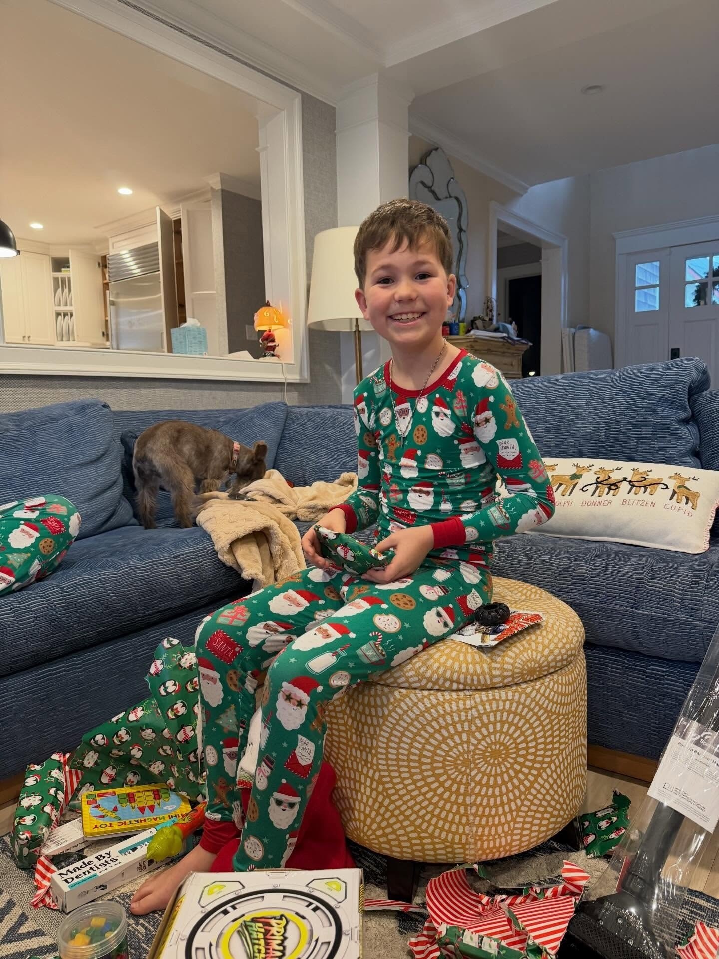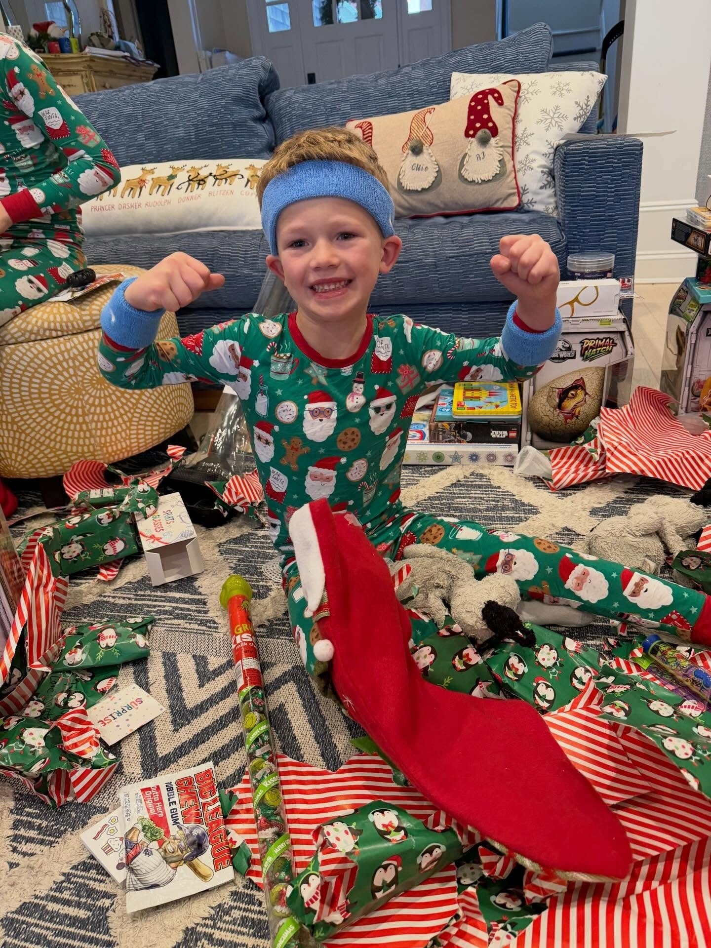 The boys were perched in various spots around the living room, surrounded by torn wrapping paper—and an array of different toys that they appear to have received from Santa and their loved ones.