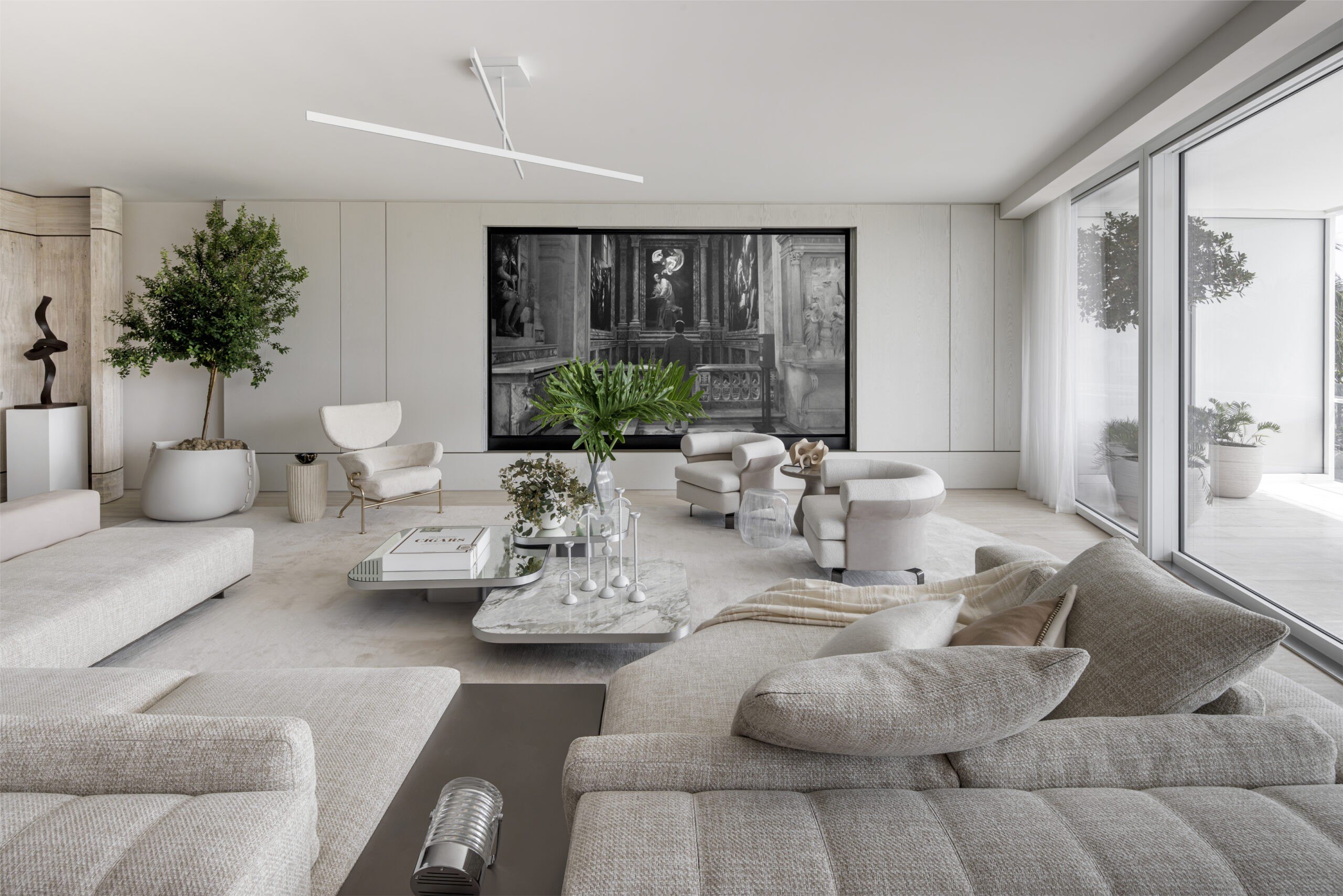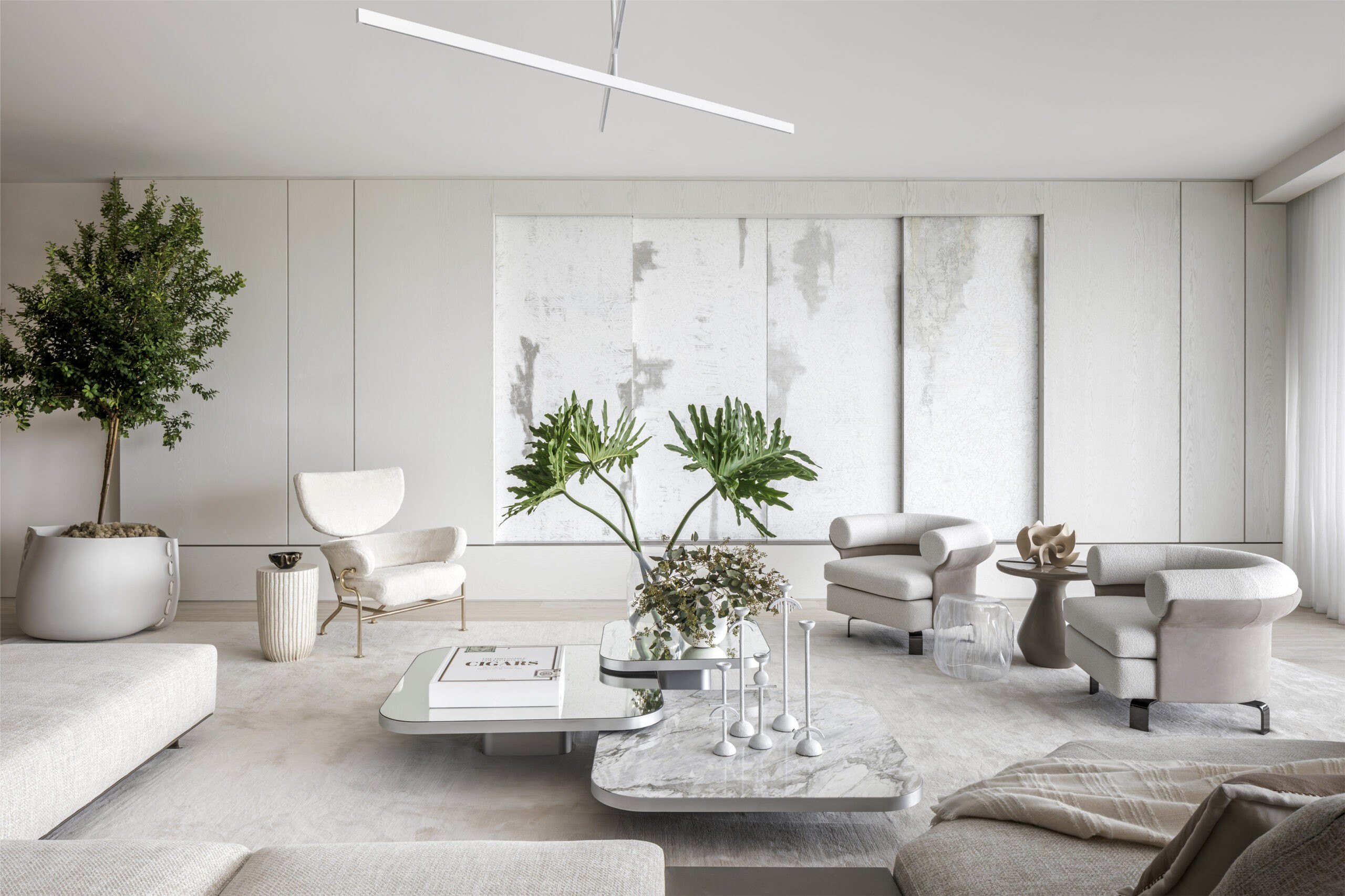 Upon entering the dwelling, guests are greeted with neutral tones and a minimalistic design that keep the focus on the artwork and the expansive space.