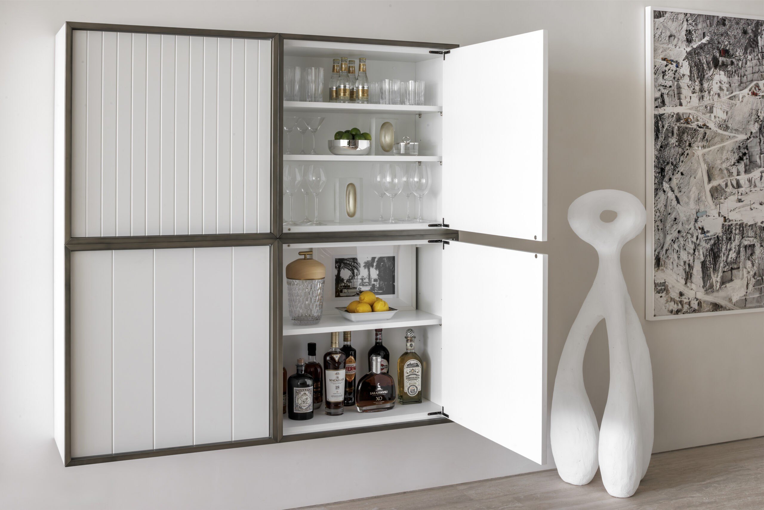 Artwork is even present in a liquor center disguised as a cabinet, where art pieces sit inside.