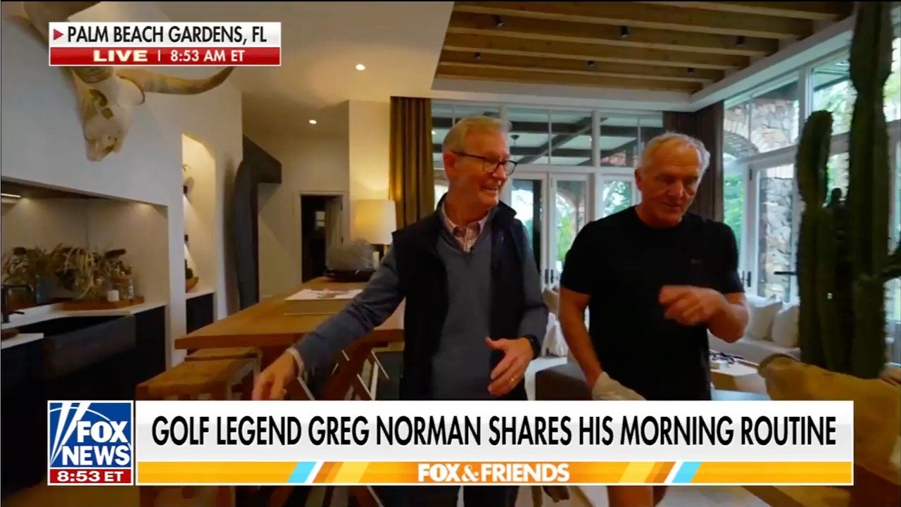 Pro golfer Greg Norman has welcomed cameras into his sprawling Florida mansion while opening up about his day-to-day life since retirement during a rare interview with “Fox & Friends” host Steve Doocy.