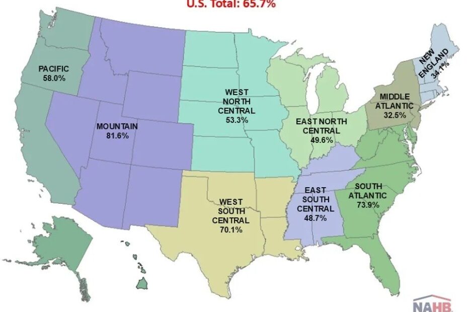 Among new single-family homes started in 2024, 65.7% were built within a community or HOA, according to National Association of Home Builders tabulations of data from the Census Bureau’s Survey of Construction. That represents 651,873 homes.