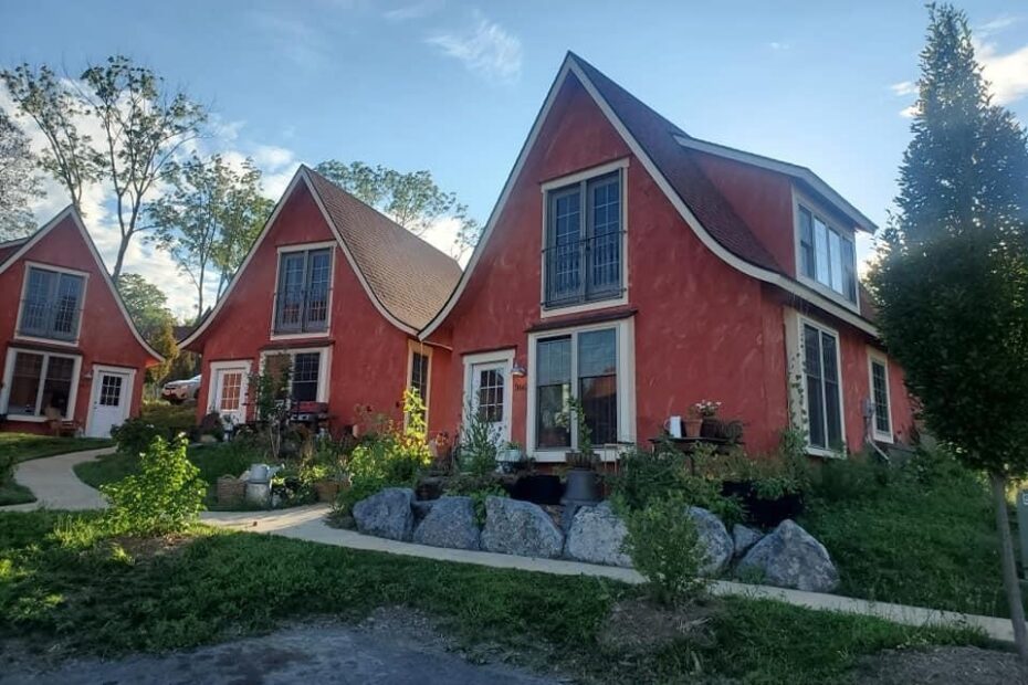 Located in the heart of the Finger Lakes in Brooktondale, NY, Schickel’s colorful collection of storybook homes can all be leased for 12 months at a time, with prices starting at $1,695 for a “studio” house. They go up to $2,395 a month for a two-bedroom gatehouse cottage with its own office.