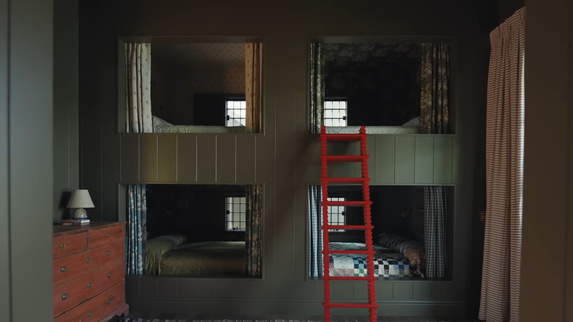 Another bedroom in the property boasts “adult bunk beds,” with four queen-sized beds built into the space, with a ladder to access the two top-level spaces, each of which features its own curtains, enabling guests to cocoon themselves in their own nook.