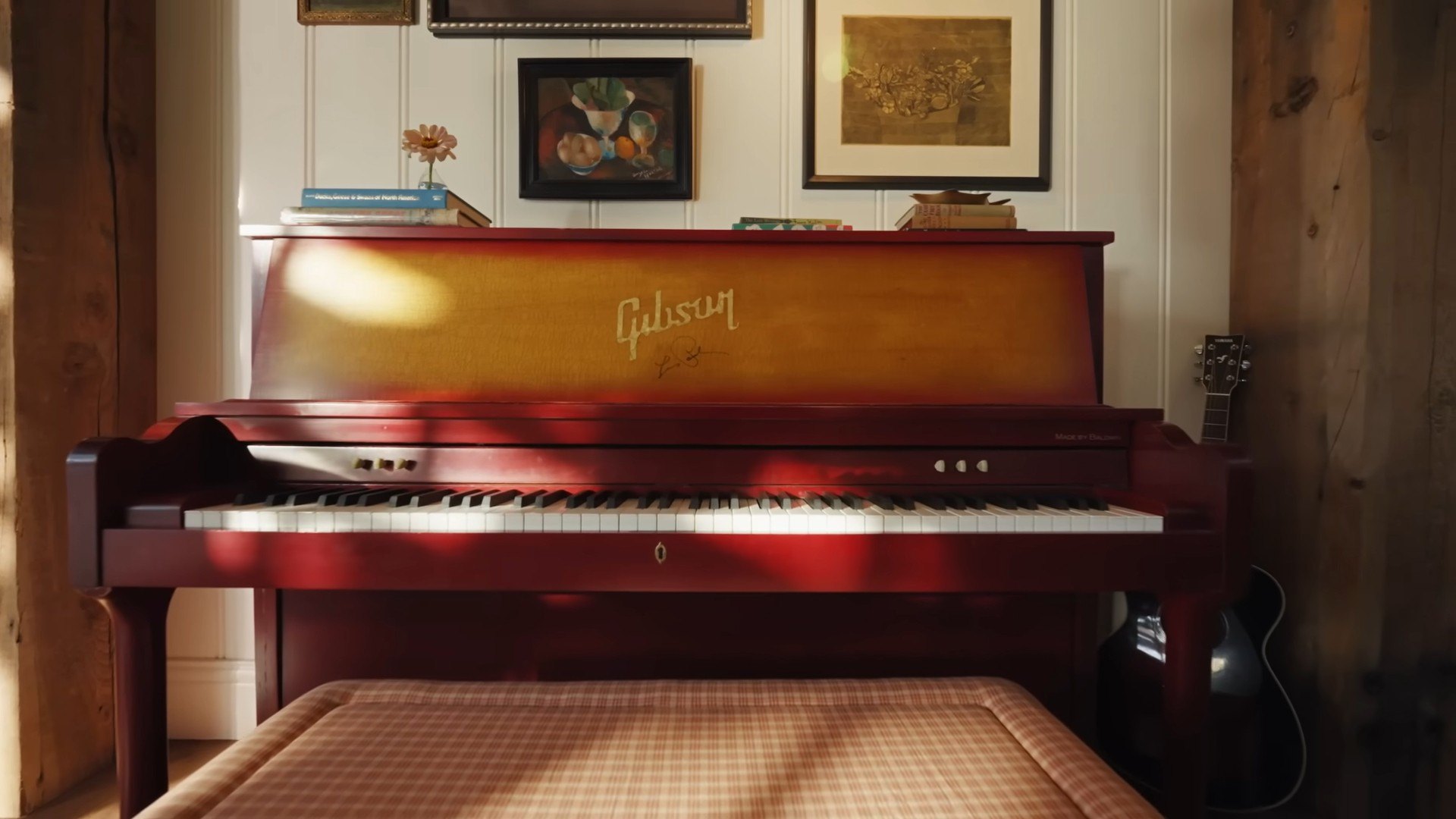 Many of the books sit on her coffee table, while others are situated on a “rare” Gibson piano her pal helped her to track down.