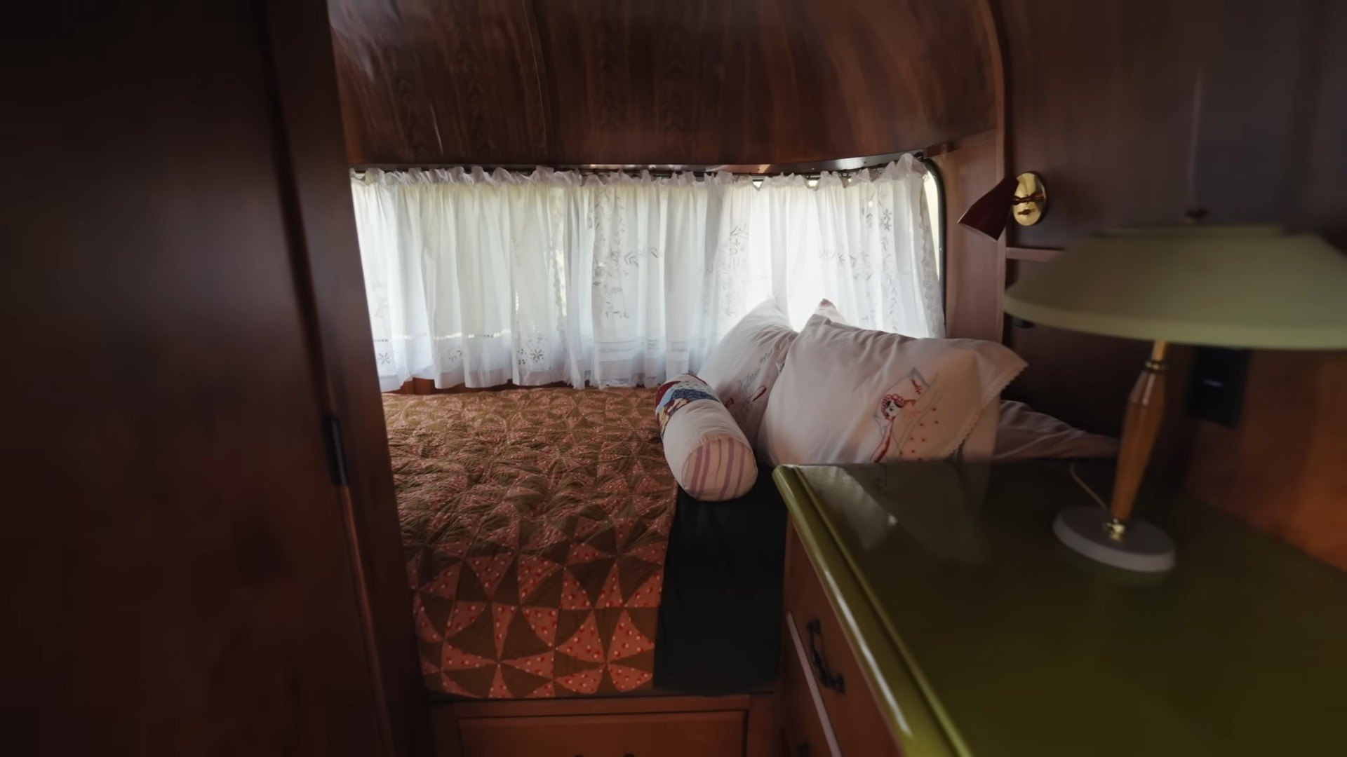 In the exterior of the dwelling, Jenner transformed her Bambi Airstream into a third guest room—having received the vehicle as a “very special birthday gift” that she found she did not need in L.A.