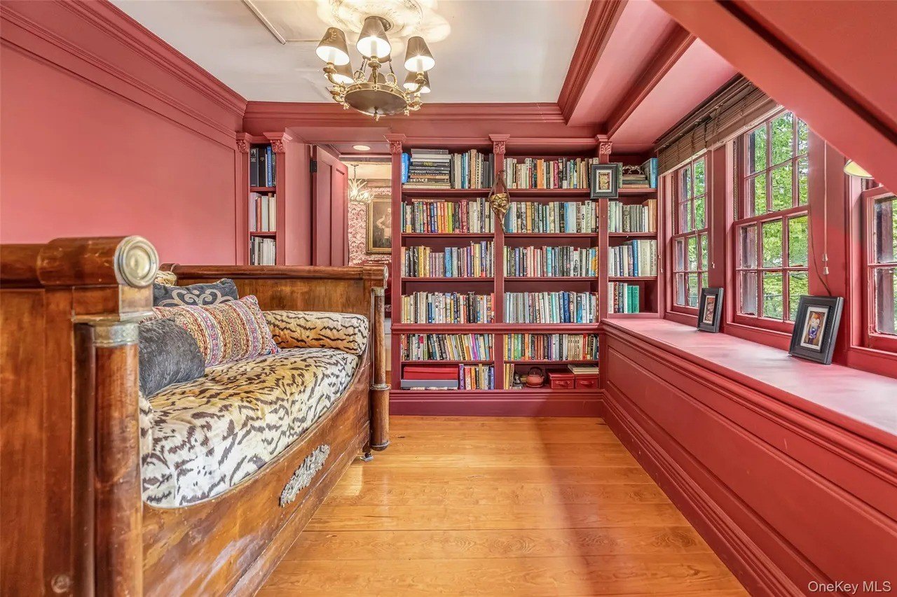 A library with built-in bookcases can be found upstairs. (Realtor.com)