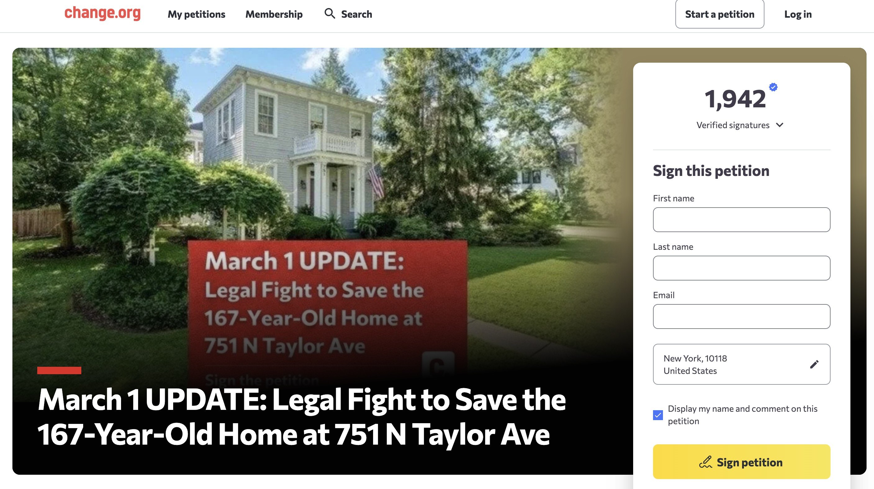 A petition on Change.org to save the home has gathered nearly 2,000 signatures (Change.org)