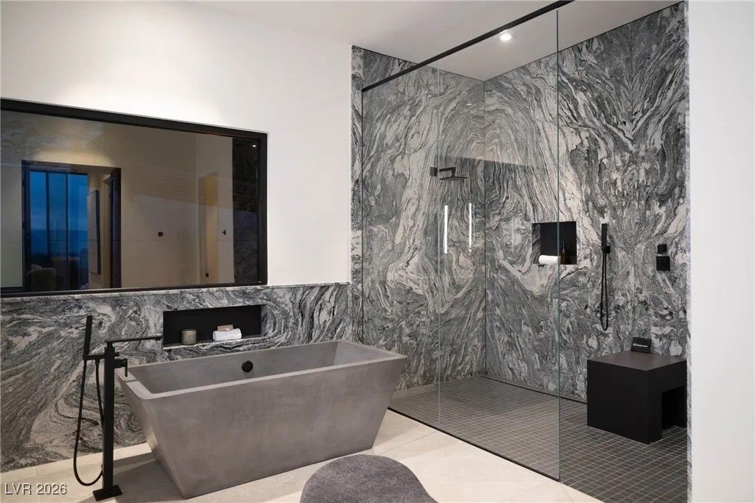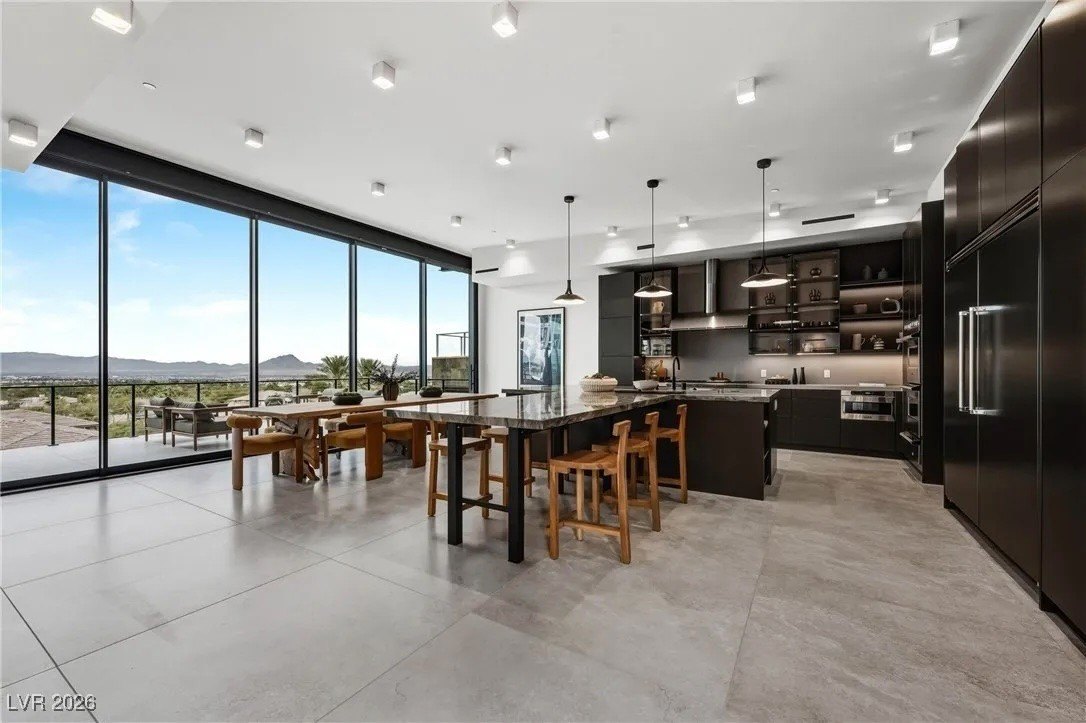 Through 12-foot-tall windows constructed from Low-E glass, which reflects heat and block UV rays, you can see Mount Charleston, Red Rock Canyon, and the Las Vegas Strip.