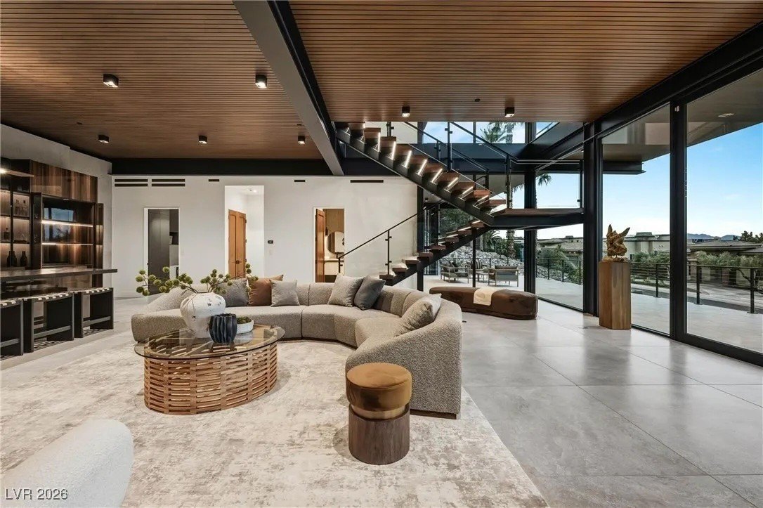 Tucked away in the exclusive MacDonald Highlands neighborhood, the property—which is on the market for $7.99 million—sits perched on a hilltop, affording its residents jaw-dropping views over the Las Vegas Strip.