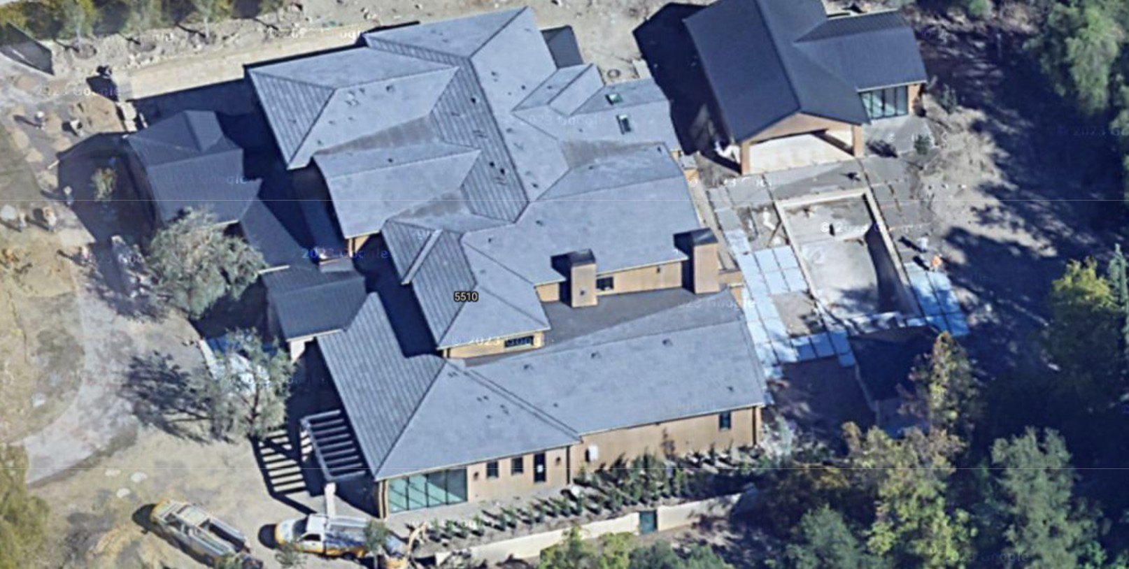 The home spans 12,000 square feet and sits in a wealthy neighborhood, where several stars reside.