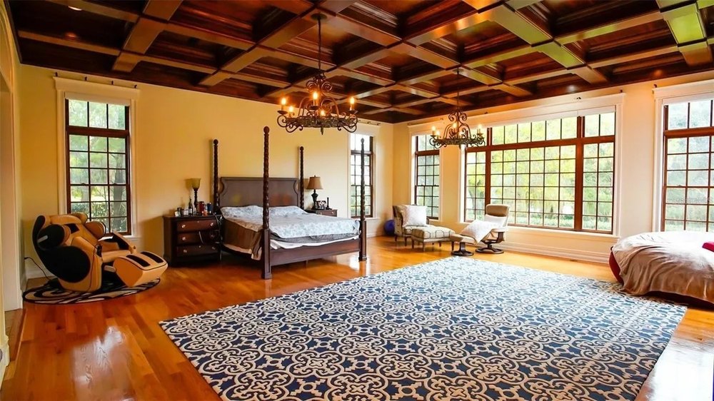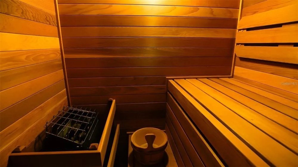 “The primary suite on the first floor features a 900-square-foot bedroom and a 1,000-square-foot spa-style bathroom, equipped with a Finnish dry sauna and steam sauna imported from Finland,” the listing reads.