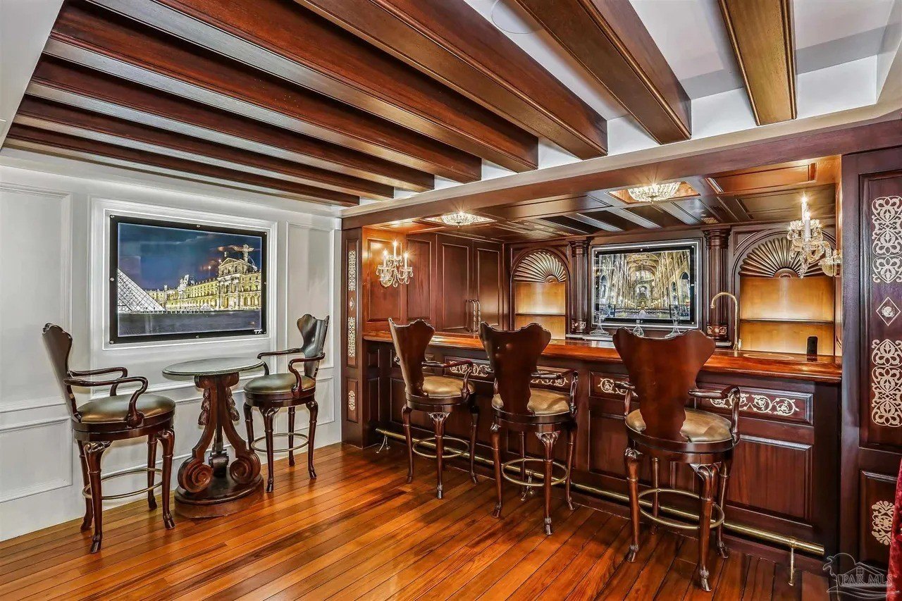 Located on 125 feet of frontage along Bayou Texar, the gated three-bedroom brick mansion dubbed Timeless Tanglewood boasts a “masterfully redefined” 6,498-square-foot interior.