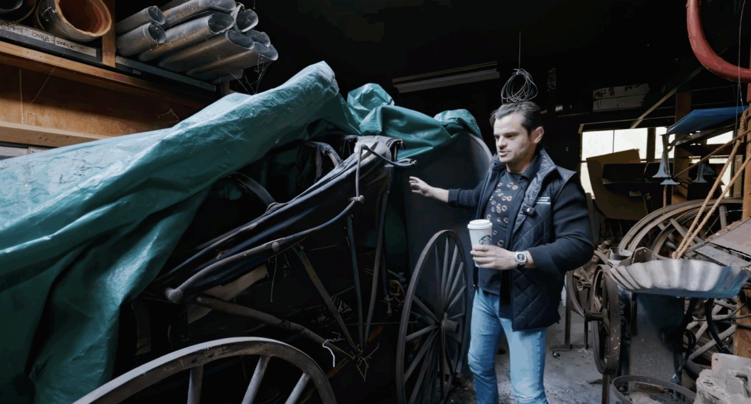 “You just don’t see stuff like this anymore,” Berg exults in a LinkedIn video as he walks through the building. “I don’t know what this is, but it looks cool,” he says of a vintage wooden barrel.