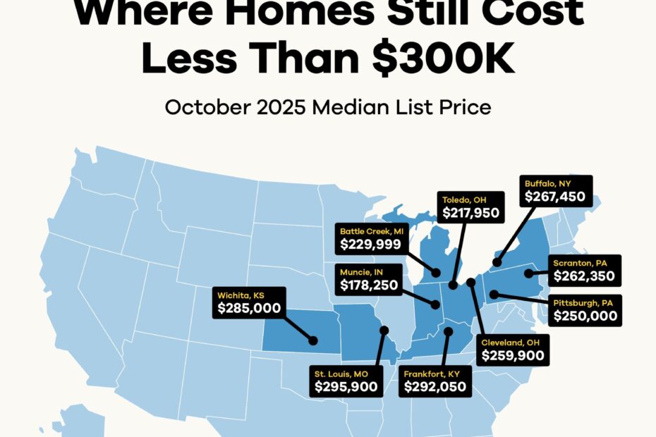 Realtor.com has highlighted 10 desirable metros with homes under $300,000—which is an impressive $125,000 below the national median.