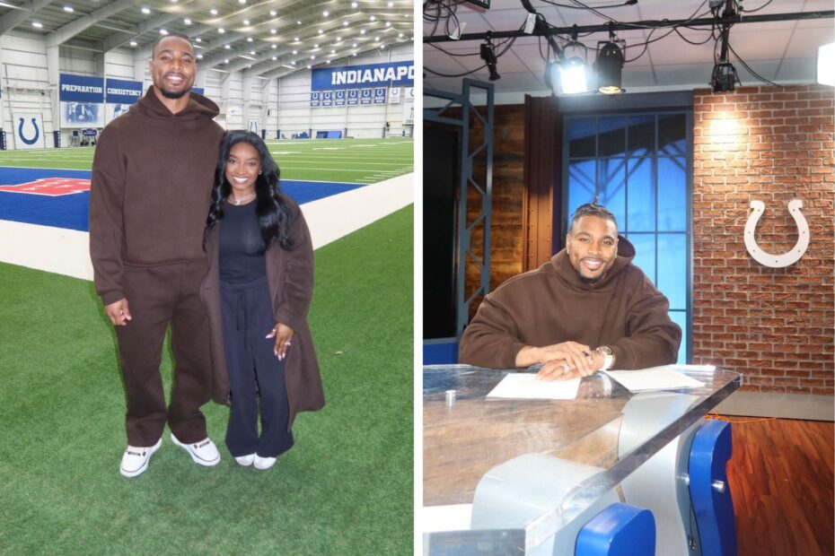 In her posts, Biles shared photos from inside the Colts’ home field, the Lucas Oil Stadium, where Owens will be based for the next year.