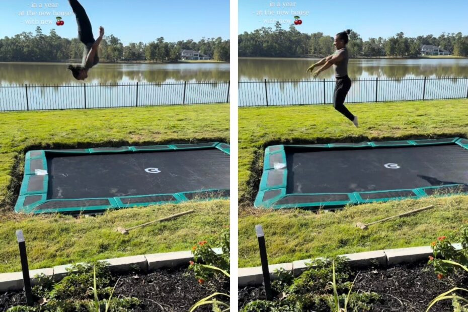 In a series of posts shared on her Instagram Stories, Biles revealed images of the home’s lakefront pool and basketball court, before heading over to test out the in-ground trampoline.
