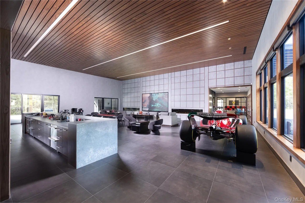 The interior features a full-scale 1:1 Alfa Romeo F1 Show Car display. (Realtor.com)