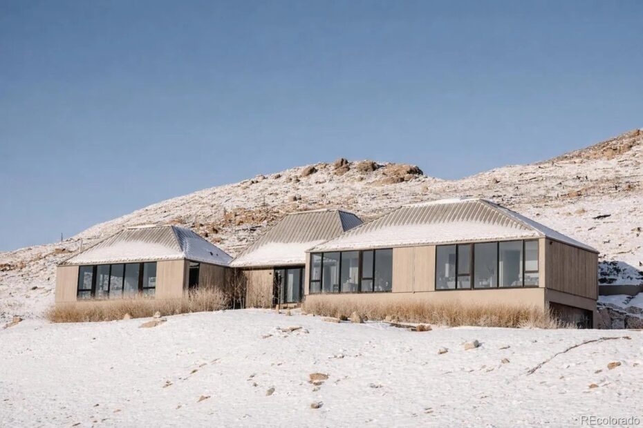 Set on approximately three acres in an exclusive gated community, the five-bedroom residence blends minimalist design with globally sourced finishes and panoramic scenery that stretches from the Flatirons and Pikes Peak all the way to the Denver skyline.