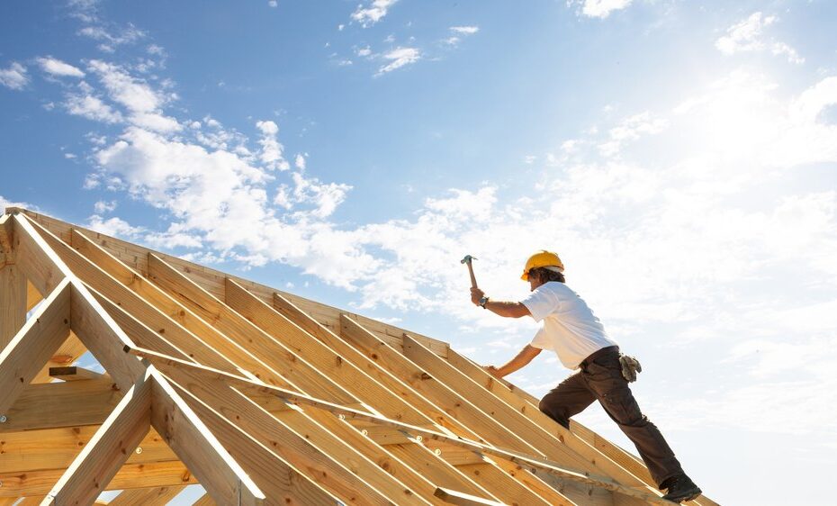 professional roofer in his working environment with tools of the trade