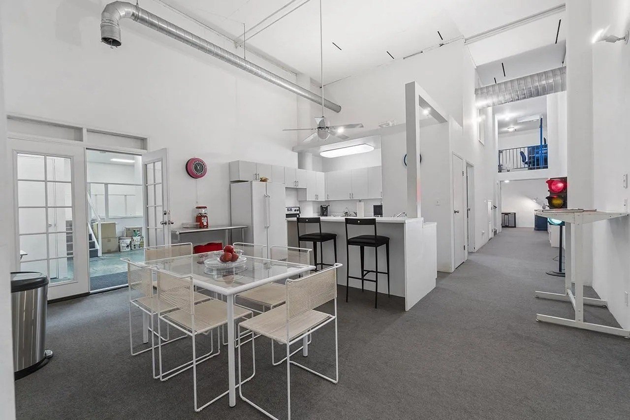 The “once-in-a-lifetime chance” to live “mostly beneath the earth” in a mostly windowless interior offers a 1,906-square-foot underground living area. Above ground, there is an 820-square-foot living area with an industrial-style kitchen connected to a 3,794-square-foot workshop.