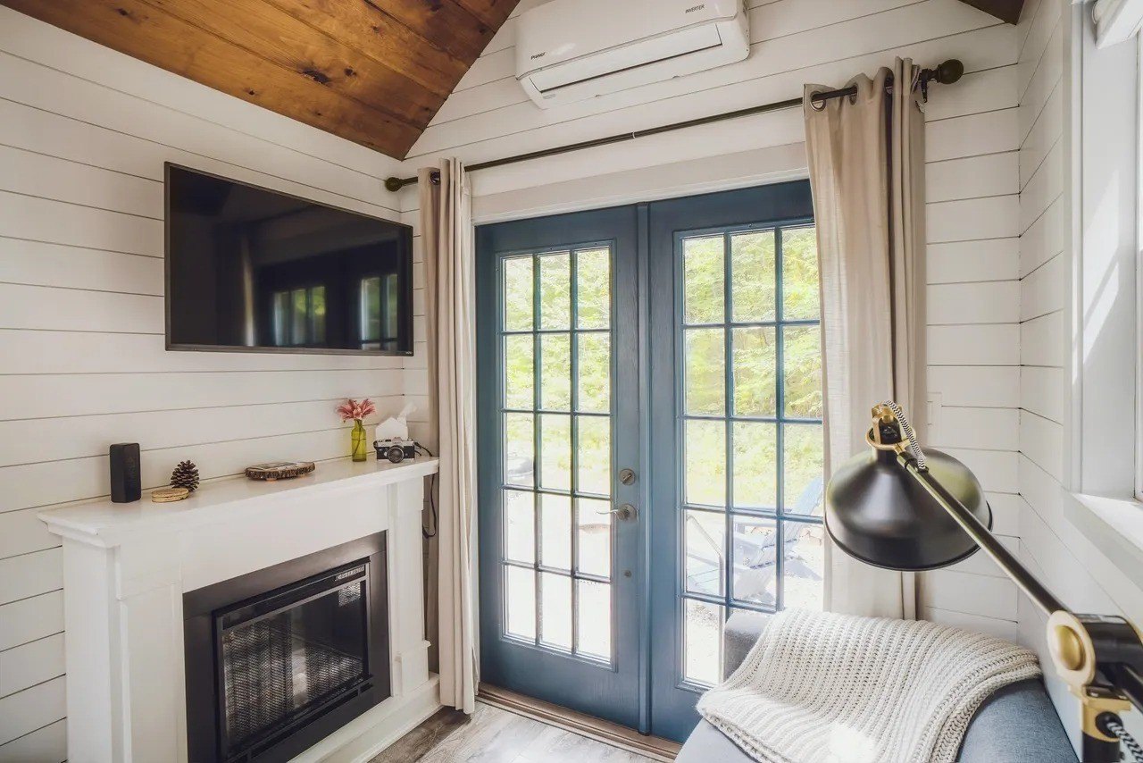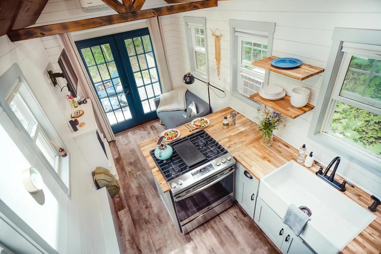 “They really do a remarkable job decorating and designing their properties,” Laserte says. “Kitchens in most tiny homes often have smaller appliances, but this one has a full-size stove and sink. There are a lot of amazing features, including a small soaking bathtub with shower.”