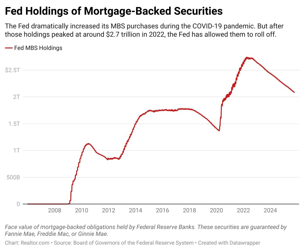 The Fed went on an MBS buying spree during the COVID-19 pandemic as a measure to stabilize financial conditions, and some economists believe that move helped push mortgage rates down to record lows below 3%.