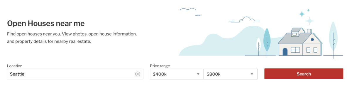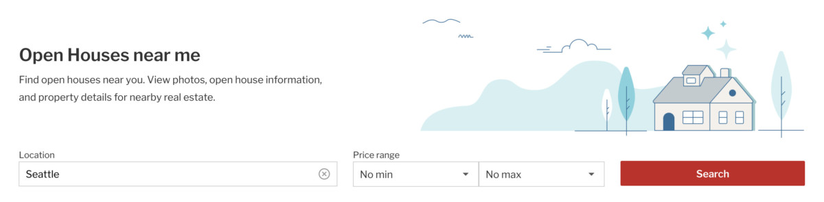 There are plenty of ways to find open houses near you. You can ask your agent and your network if there are any upcoming open houses you should attend. You can also use Redfin to find tons of open houses near you. To do this, go to Redfin’s open houses near me page.